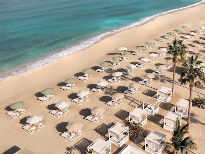 Drift away by the pool as you soak up sunshine and undisturbed views of the Arabian Gulf. Surrounded by white sun loungers and cabanas, overlooking the azure blue waters, the resort's pool provides the perfect space to relax. Let the music hum in the background as you forget where you are.