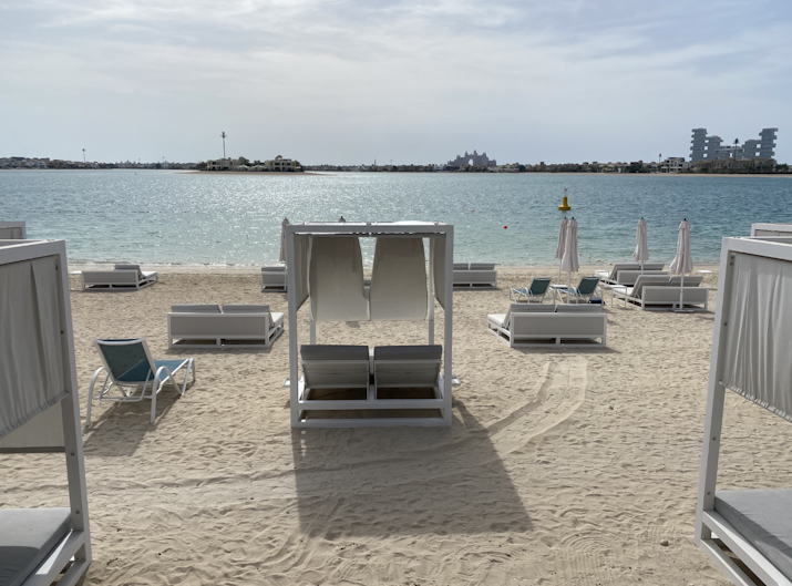 Relax in shaded cabanas, immerse yourself in the serene setting, and enjoy plenty of space to chill at Taj Exotica Resort’s private beach. With views of the Palm Jumeirah villas and a jetty on the left, it's a scenic spot for laid-back days. You can also add some adrenaline to your day and join beach volleyball and football - check the resort activities schedule for details.