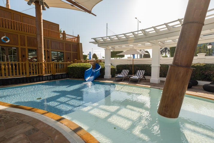 Nation Riviera Beach Club is a go-to in Abu Dhabi—and for good reason. Think: a huge main pool, a kids’ pool with a slide, a third-floor pool, and a quiet stretch of private beach.