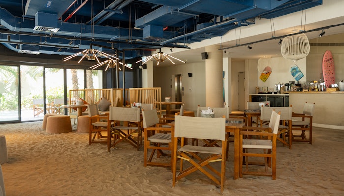Located on the edge of the right side of the beach at Mövenpick Resort Al Marjan Island, the aesthetically pleasing beach club is for adults only. Expect great vibes, chic decor, a mouthwatering menu, and unmatched views.