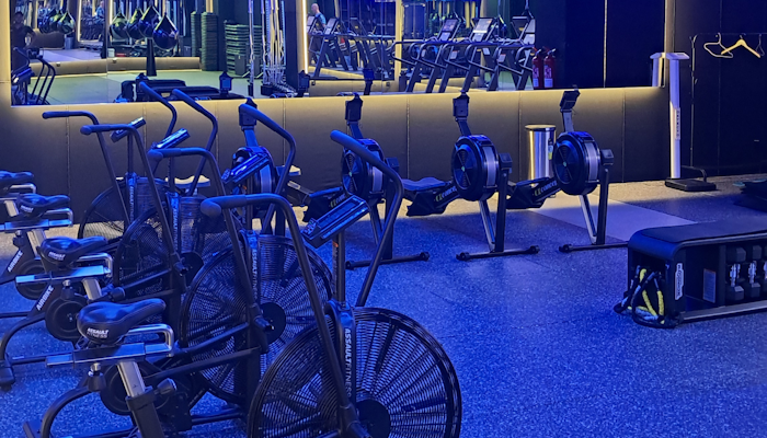 Get ready to train in an environment designed to elevate your workout experience. Equipped with leading Technogym machines, the studio ensures that every piece of equipment you use is built for precision and performance. The atmosphere is buzzing, with dynamic lighting that shifts to match the energy of your session, creating a space that feels alive and energetic. High-energy playlists pump through the speakers, setting the rhythm for your movements and keeping you motivated from start to finish. The mirrored walls add to the sleek aesthetic and help you maintain perfect form, so you can train confidently.