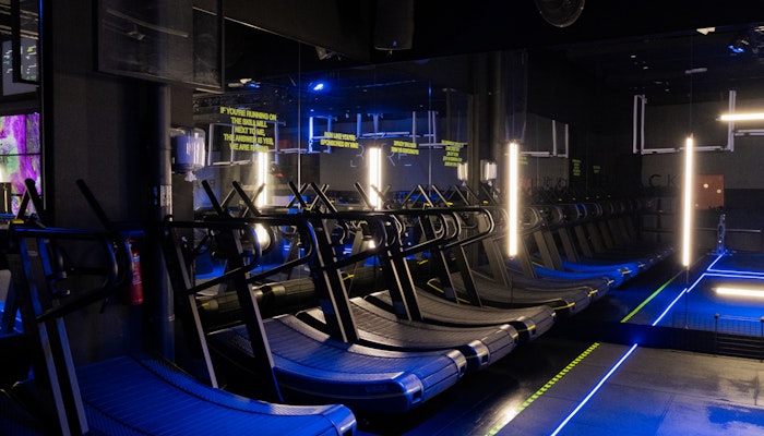 Where calorie burning is the game, this high-energy class is an ultra-effective way of improving cardiovascular fitness while sculpting a lean, strong physique. The workout alternates between intense cardio bursts on the studio’s custom 'Skillmill' treadmills and functional, metabolic barbell strength training exercises, delivering maximum results in minimal time. Go at your own pace and watch the results unfold.