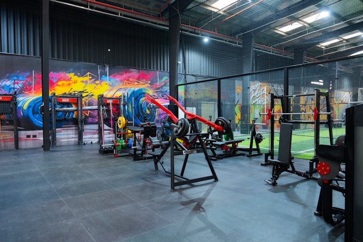 Level Up Gyms radiates energy and determination. Its 50,000 sqft open-plan layout and modern design set a clean-cut, industrial vibe. High ceilings, concrete walls, and bold graffiti art make a statement, complemented by motivational quotes that keep you driven during every rep.