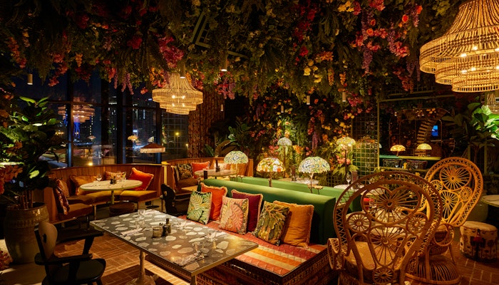 Perched on the fourth floor, Mama Restaurant blends cosy banquettes with stunning Business Bay views. Enjoy a lively atmosphere with DJ sets and bold cocktails, while the sharing-style menu offers a playful twist on French and international classics.