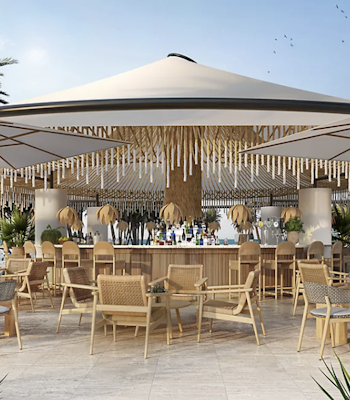 Samphire combines the charm of a Balinese beach club with a Mediterranean lounge, offering a serene poolside restaurant and bar. Unwind amid natural furnishings and palm trees, sipping signature cocktails at the swim-up bar or ordering from the Mediterranean menu right to your sunbed.