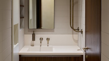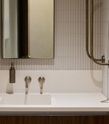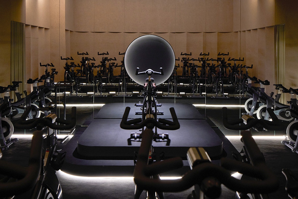 The space is filled with low-lit design details, from arched mirrors to marble touches, a candlelit studio, and a wish tree in reception for a wholesome moment post-class.