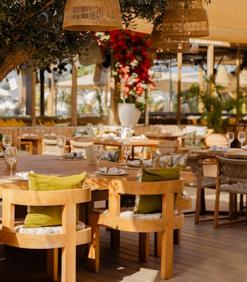 Step into a world of chic aesthetics and laid-back living with a touch of party at this iconic beach club on Palm West Beach - the epitome of boho-luxe. From the moment you step in, you’re transported to a place where the beach breeze mixes seamlessly with DJ beats and a chilled atmosphere. The space is effortlessly Instagrammable, with touches like crochet-trimmed umbrellas, hanging disco balls, and a central olive tree setting the stage for your perfect setting. Whether you're here for the views or the vibe, this is the spot to see and be seen.