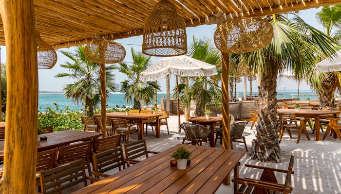 A long-time favourite among Dubai’s beach lovers, this one’s a favourite among the it-girls and guys. Soft house beats drift through the day, while golden-hour light nudges the vibe into social evenings. From Mediterranean-inspired plates and sun-soaked seating to curated greenery, every detail feels like a time-slowed holiday. For the wanderers, and for Privilee-ers.